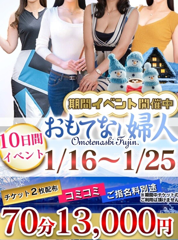 >期間限定< おもてなしイベント開催中 70分 13,000円 100分 18,000円 130分 24,000円 [ ホテル代+交通費込み ] ※ご指名料別途
