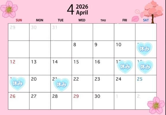 2026/4/7 15:03 『4月お休み予定』 |