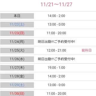 11月後半残りの出勤予定です