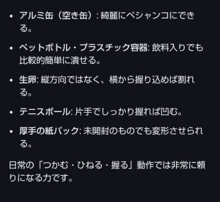 私の握力で潰せるものは