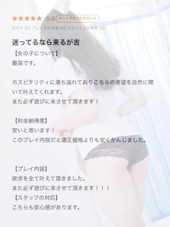 口コミ投稿ありがとうございます♡♡お好きなこと、やりたいことをたくさん事前に教えていただいていたおかげで全部叶えられてよかったです✨✨✨…ぬるっぬるになっちゃ… >>もっと詳しく見る