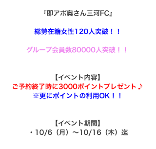 おはようございます ![]() 涼しくなり 待機もだいぶ楽になりましたー 涼しくなって来たので きちんと出勤致します ![]() 目標「休まない」 ![]() なんか台風来てます?? 三連休に被らないと良いですが ![]() 万博もそろそろ終わりですよね? チケット消化できないとか何とか。 仲良しさん、無事に行けたかしら ![]() ![]() ポイント使えてさらに 3000ポイントプレゼント! 年末のお遊びに向けて ポイントは貯めておきましょー ![]() 今日も11:00に三河安城行きますね。 今日もよろしくお願いします ![]() |