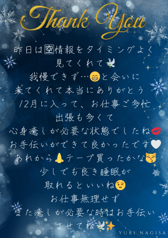 再会S様♡ありがとう♡♡ ![]() тндйк уoц☆ ♡またお会いできますように♡♡ 渚ゆり |