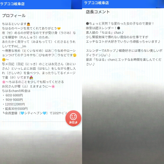 ![]() ![]() ![]() ![]() ふたりだけのぽかぽかの時間のなかでちはるのせめ(お◯りなめやローションつけてのテコキやち◯びなめやフ◯ラ)を体感(たいかん)しながらきもちよくなって…ちはるのうえのおくちにて♡だしてほしいなぁ〜 そのあとのひとときはいっしょに♡たっぷりプリンのクレープ(コンビニ)♡や♡とろたく巻(コンビニ)♡や♡クリスピーチキンプレーン(コンビニ)♡や♡カスタードエクレア(コンビニ)♡やかぼちゃと紫芋(むらさきいも)のプチケーキ(コンビニ)♡や♡海老(えび)グラタン(コンビニ)♡や♡ファンタグレープ♡や♡ジンジャエール♡を食べながら恋人同士(こいびとどうし)のようなすてきなじかんを体験(たいけん)しちゃお? ♡〜こころやカラダをリラックスしてふたりだけのひとときをすごしちゃおうね〜♡ おさそいまっています ♡ |