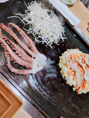 初めての月島さん。 もんじゃ焼き大好き! キャベツ叩いて甘々にして土手作り。数こなしてきたから今ではばっちり。下手っぴな頃は土手崩壊。モレモレ。 月島もんじゃ美味しかったよ。 あと。 ![]() お好み焼きとゲソ焼きも。 キムチと豚肉を生地にサンドイッチ♡して焼いてくださいね、と言われたのに間違えたー! 食べ過ぎ♡ うぷぷ。 理花♡ |