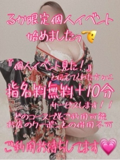 今日もおつかれさまでした ![]() 遊んでくれた方々 ありがとうございました〜 ![]() ![]() 今日も個人イベント祭りで 見てもらえてるのが とっても嬉しい〜ですね ![]() ![]() 喜んでもらえて もっと嬉しい〜 ![]() 今日も 楽しい出会いに感謝です ![]() 夜に遊んでくれた方々への お礼の日記が書けてないので 明日更新します ![]() ![]() 遅くなってしまいごめんなさい ![]() 明日にはちゃんと更新する ![]() ![]() さて明日の日曜日も 10時から出勤しますっ ![]() 明日も 刺激的な1日に なりますように ![]() ![]() お楽しみだっ ![]() ![]() ![]() 個人イベントのほうも よろしくお願いします ![]() ![]() 睡魔がやばいので おやすみなさい ![]() るか ![]() |
