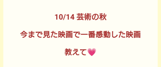 ![]() 流行ってる・流行ってた映画は やっぱり良かった気がする ![]() あとハッピーエンドで終わる映画も好き♡ 感動かぁ… ![]() ![]() 動物モノや家族愛系は無条件で泣けるし感動するんだよね ![]() ・私の頭の中の消しゴム ・八日目の蝉 ↑これは泣ける系♡ ・永遠のゼロ ↑これも感動系♡ まだ見てないけど『国宝』もいいらしいですよ ![]() はいからさん♡まいこ |