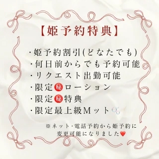 電話・ネットご予約より姫予約が1番嬉しいです♡