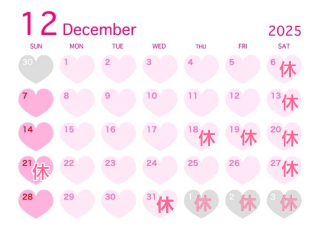 1週間の出勤時間と12月の出勤カレンダーをお知らせします♡1週間予定♡12月カレンダー♡
