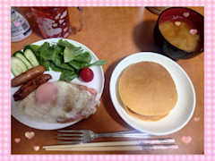 お題:得意料理はなんですか♡に回答♪特に、これと言ってあるわけではないけど♡唐揚げ♡ホットケーキ&ハムエッグの朝ごはん最近作った料理載せます♡