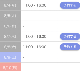 次回の出勤は、8月4日(月)の11時からになります