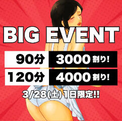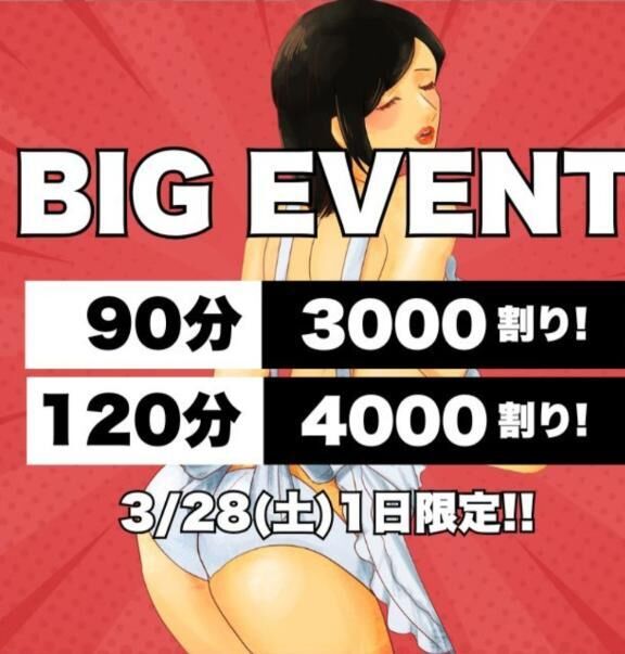 本日1日限定でBIGEVENT開催です◆90分コース:3,000円割引◆120分以上:4,000円割引※他割引との併用不可お得なこの機会に、ゆっくり癒されに来… >>もっと詳しく見る