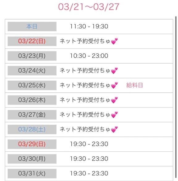 ごめんなさいm(__)m 出勤変更になりました。来週は平日に出勤予定でしたが、週末の出勤になります。 今、ご予約いただいてる仲良し様はお会いできるので大丈夫で… >>もっと詳しく見る