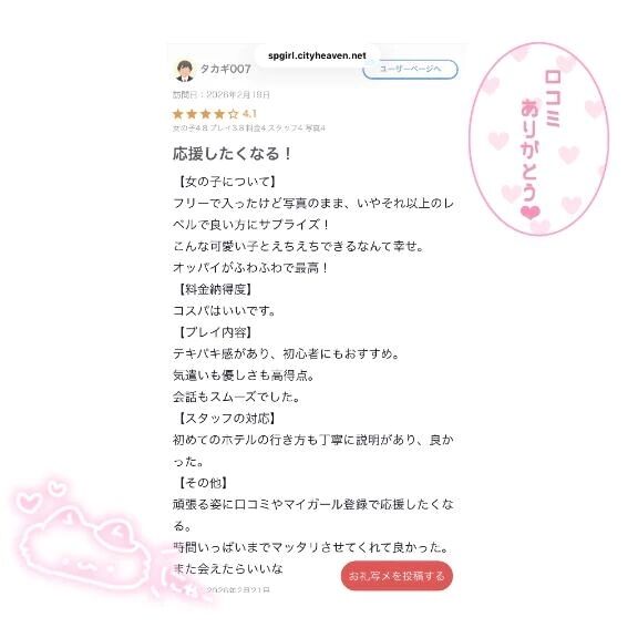 やっほー🌙 今日はちょっとだけお願いの日記です🥺 ●●●の口コミをもしよかったら書いてもらえると嬉しいです…♡ 口コミを書いてもらえると、せな自身もお仕… >>もっと詳しく見る