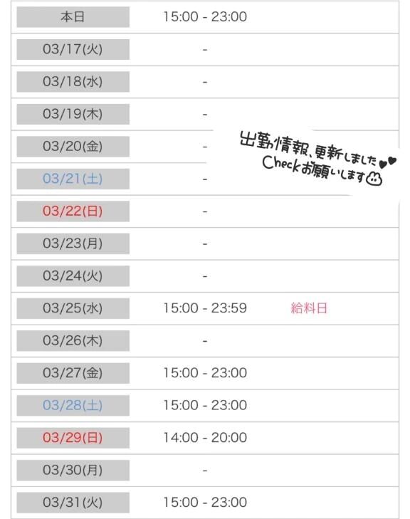 こんばんは🌛シフトをちょっと変更させていただきました🙇🏻♀️確認のほどよろしくお願いします‼️旅行のためしばらくお休みです😋旅行明けお時間の合うお兄… >>もっと詳しく見る