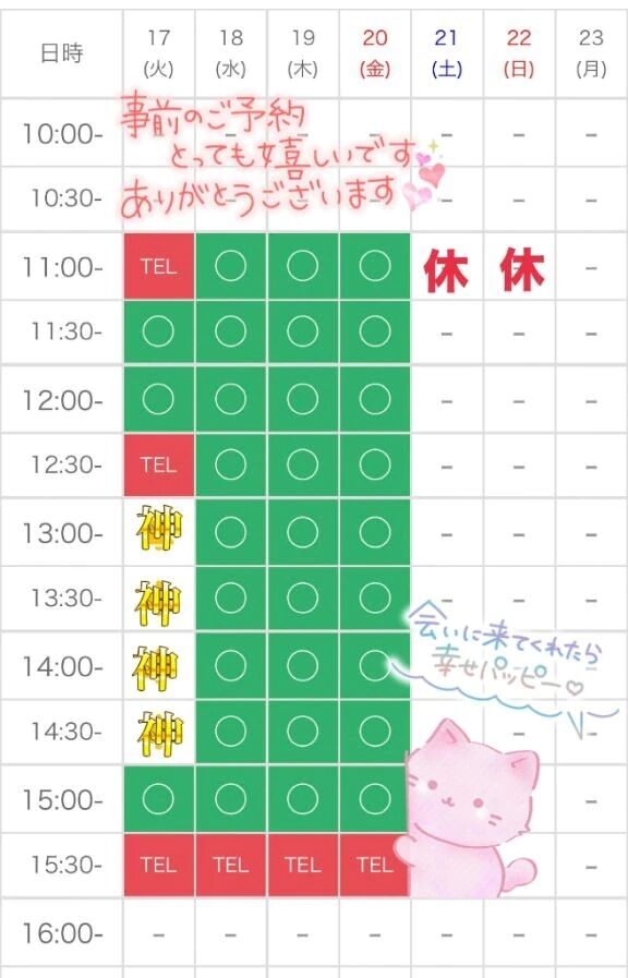 本日も11:00-17:00で出勤です♡スタート仲良しさんご予約ありがとうーー♡-♡♡気を付けてお越しください♡♡12:40〜お誘いおまちしています♡1日宜し… >>もっと詳しく見る