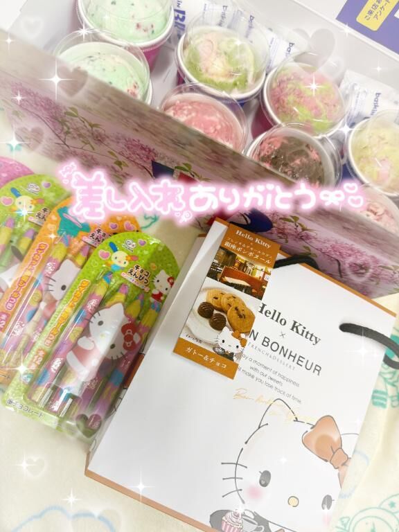 大好きなサーティワンに欲しかったサンリオのチョコえんぴつ!!他にもセンス抜群な差し入れたくさんありがとう~(((o(*゚▽゚*)o)))♡仲良しさまのおかげで… >>もっと詳しく見る