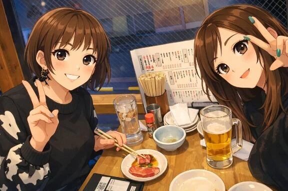 取り敢えずビール〜からの〜三ヶ日みかんサワーとかのハシゴかな絵は友人と女子会でふたりで鶏の居酒屋に飲みに行った時に撮ったふたり自撮りをChatGPTに絵にして… >>もっと詳しく見る