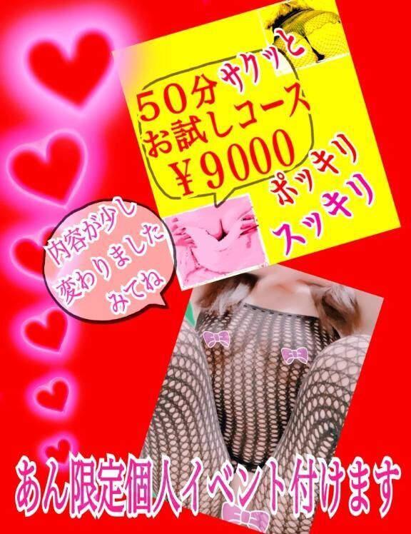 新コースの定期日記も随分発信してきたのでここで内容少し変わりましたよーのお知らせですお試しの新コースがあるんです!50分¥9000ポッキリ♡50分コースってど… >>もっと詳しく見る