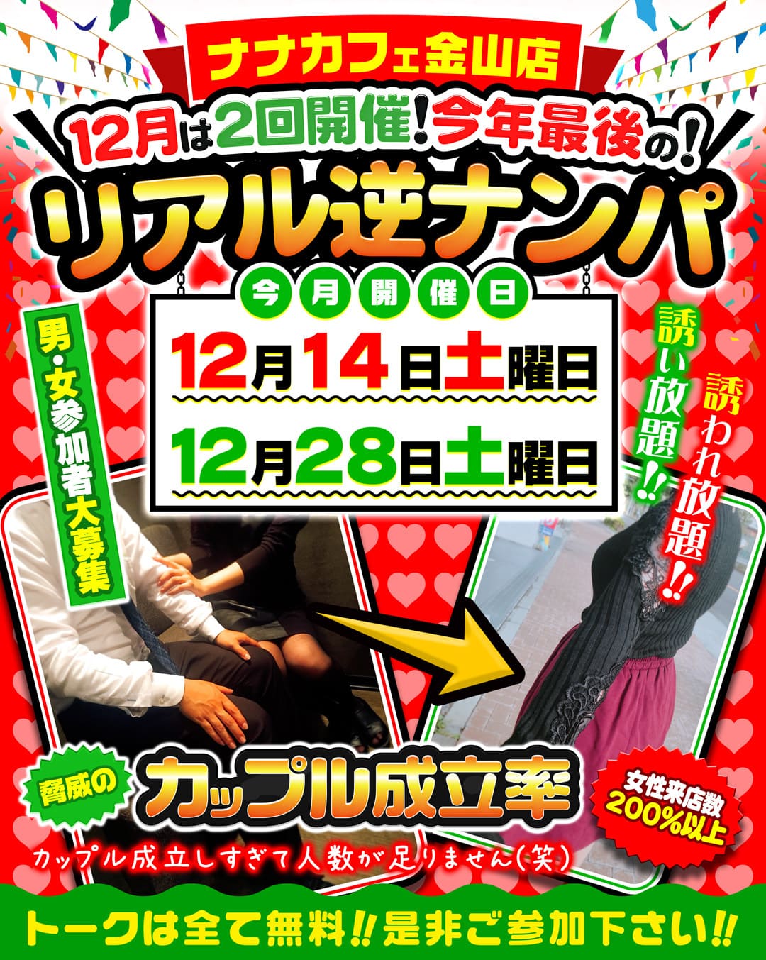 今年最後!!【12月は28日(土)開催!!】誘い放題♡誘われ放題♡大人気逆ナンパイベントやるよー!!
